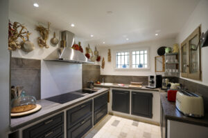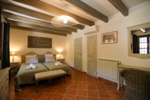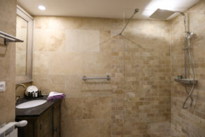 A l’étage et rez-de-chaussée inférieurs : quatre chambres en suite, toutes spacieuses et confortables.