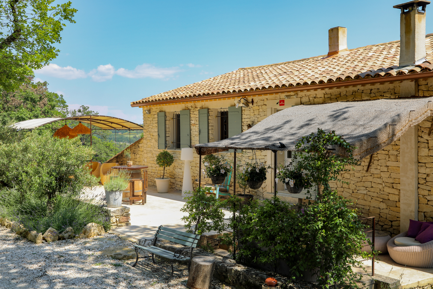 À seulement quelques minutes du célèbre village de Gordes, cette propriété offre un panorama exceptionnel sur le village, les monts du Vaucluse et le Luberon.